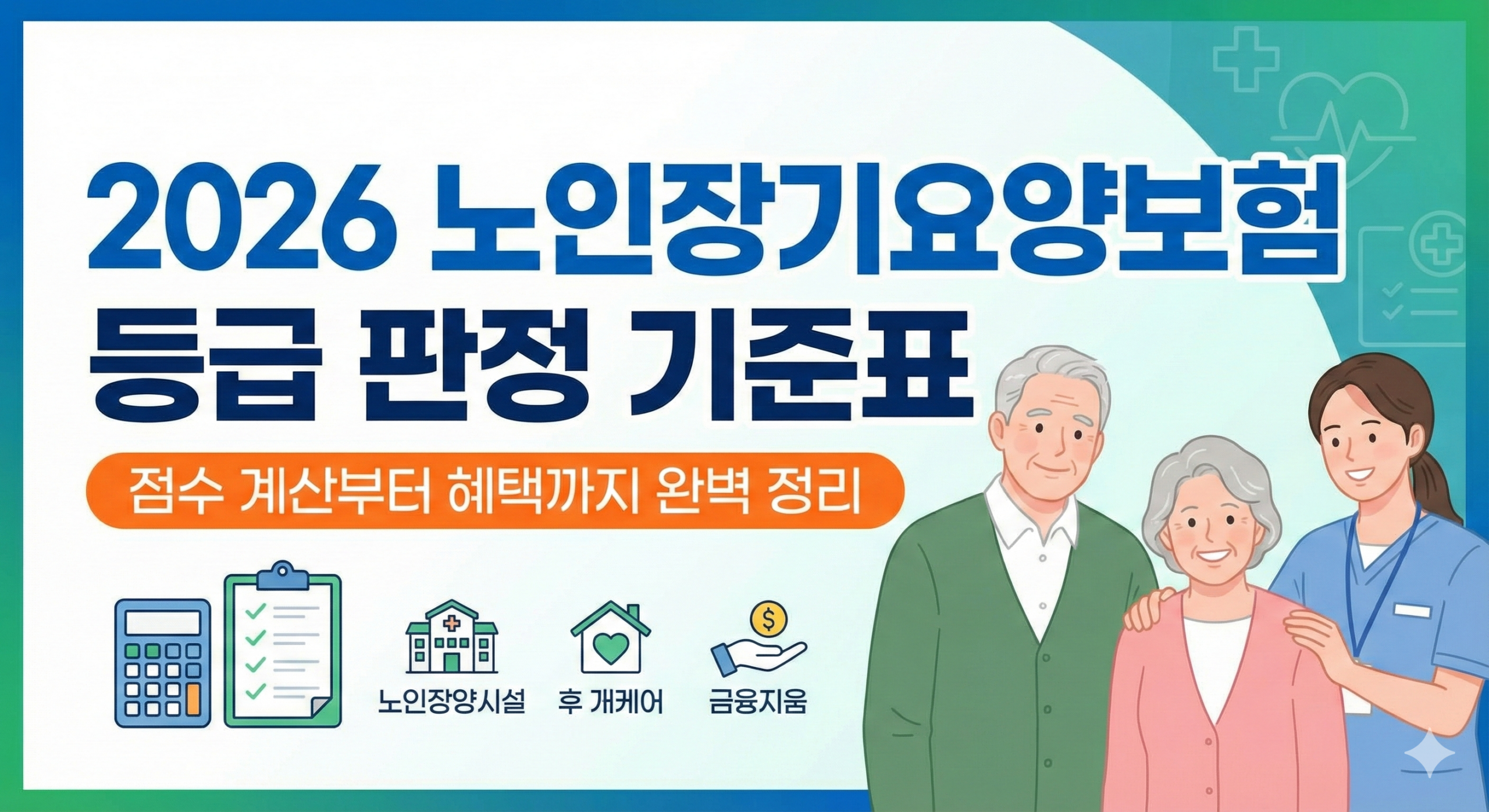 장기요양등급은 인정 조사 결과에 따라 1등급부터 인지지원등급까지 구분됩니다. 2026년부터는 중증 수급자에 대한 보장성이 강화되어 이용 횟수와 지원 범위가 확대되었습니다.